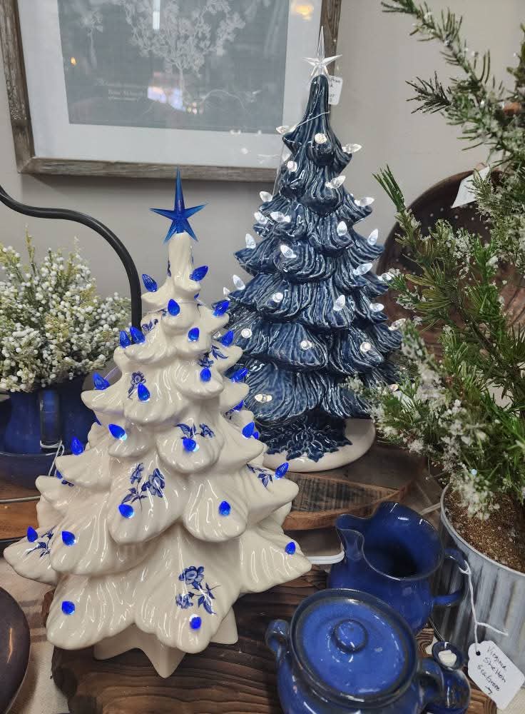 Beautiful heirloom quality ceramic tree made from a vintage Nowell Mold 1968-72 time frame. Glazed trees are available in several color options. Tree includes choice of clear or multicolor light twist and clear star, and light kit. Trees in stock ship in 2-3 days, if out of stock, please allow 4-6 weeks lead time to make and ship. Price includes freight to lower 48. Small handling and packaging fee will be added to insure package arrives safely.