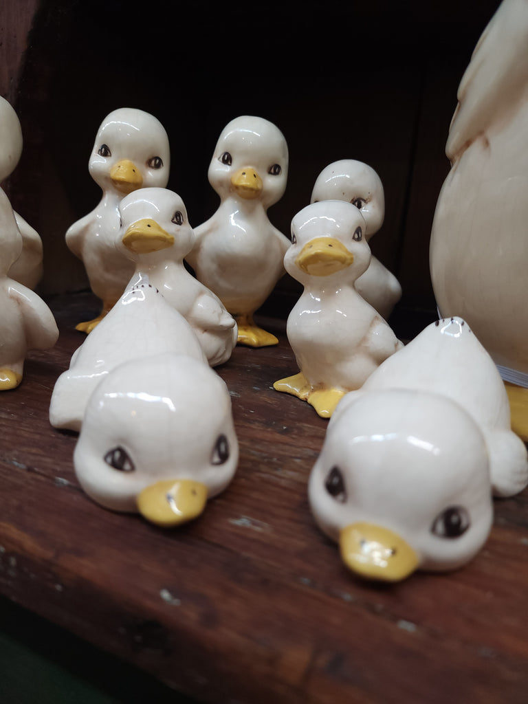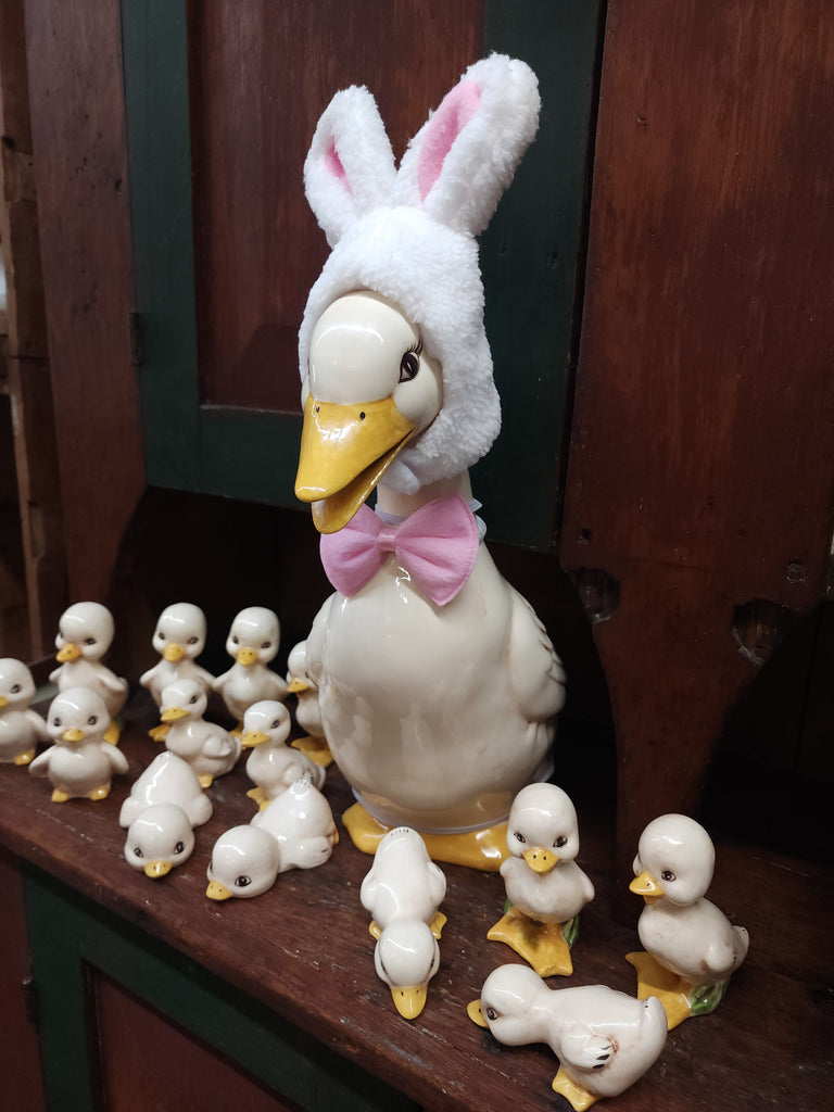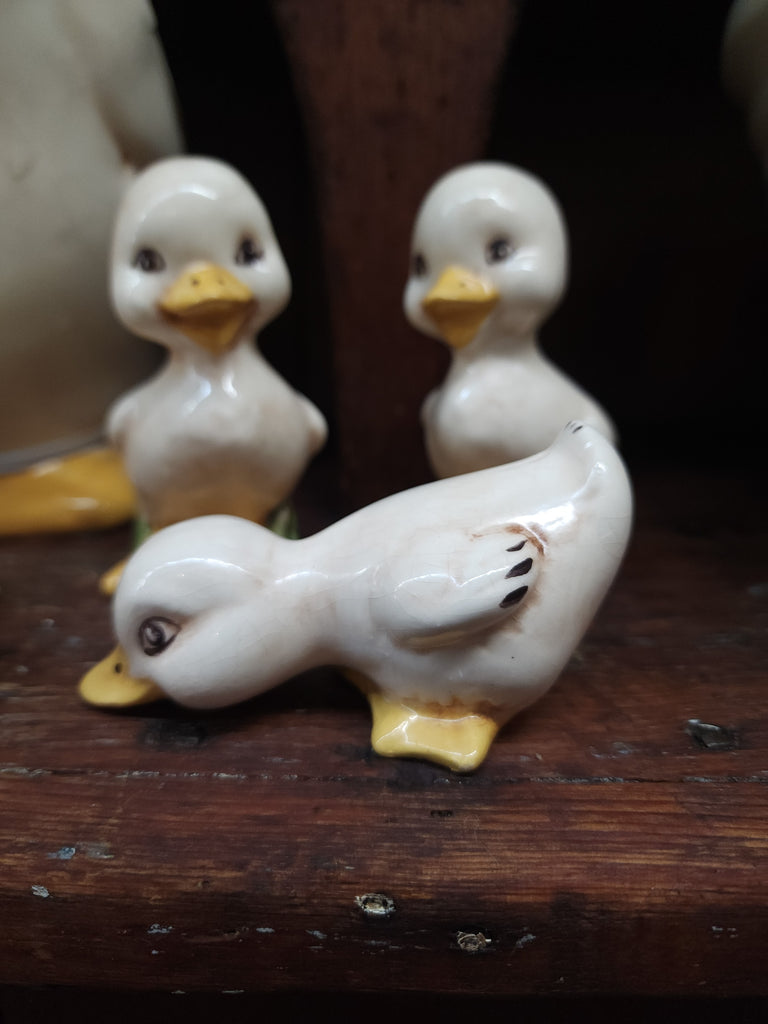 SKUBeautiful glazed ceramic baby geese made from vintage 1960s-70s molds. Each Goose is handpoured, glazed, and fired twice to create beautiful stunning and durable pieces. Set of 3 babies includes one of size. Mama goose is also available for purchase. In stock, ships in 3 business days, if out of stock, please allow 4-5 weeks lead time to make and ship. MARK ORDER: Ship or Pickup to insure correct paperwork is generated. Price includes freight to lower 48. Small handling and packaging fee will be added to insure package arrives safely via UPS. (Clothes are not included. Baby geese are available under separate item number)