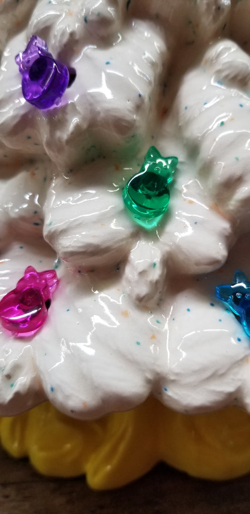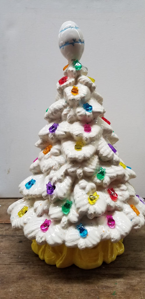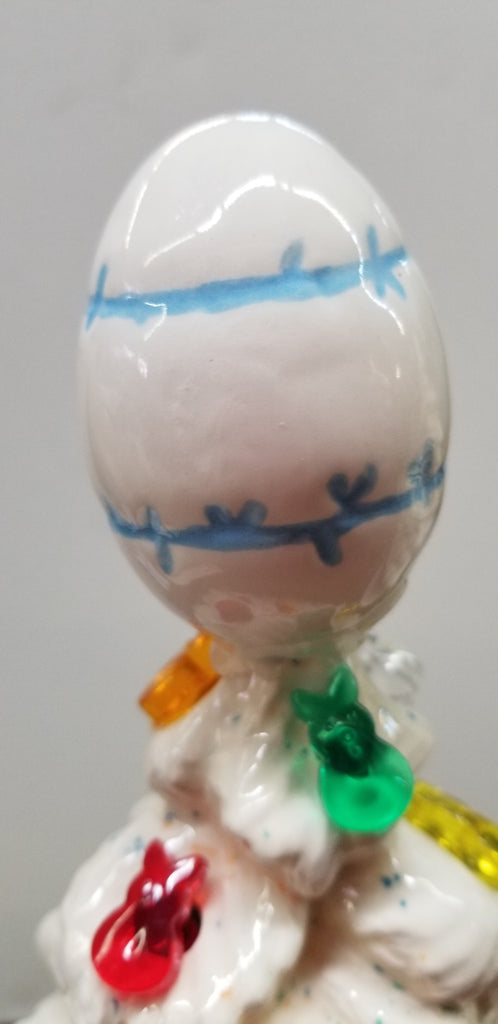 Beautiful Easter Ceramic Tree made from Nowell Mold. Tree Includes a beautiful speckle glaze and yellow base. Colorful Easter Bunny light twist and vintage mold ceramic Egg Topper. Tree is wired with new light kit. Price includes freight charge to lower 48. A small packaging fee will be added. Each tree is handmade and unique. No two trees are identical. Bulbs on this tree are not glued in so that the cab be changed out with birds or marbles. In stock tree ships within 3 days. If out of stock, allow 4 - 6 weeks to make and ship. A tracking number will be emailed upon shipment