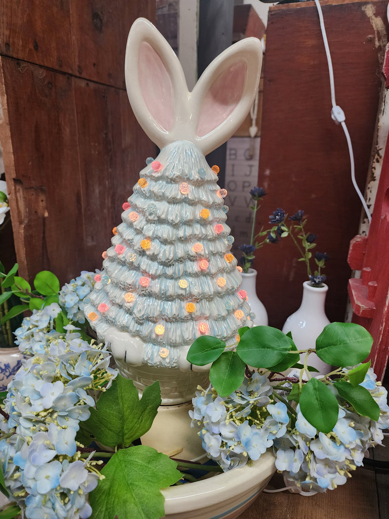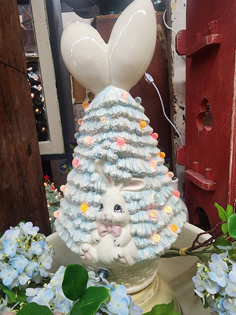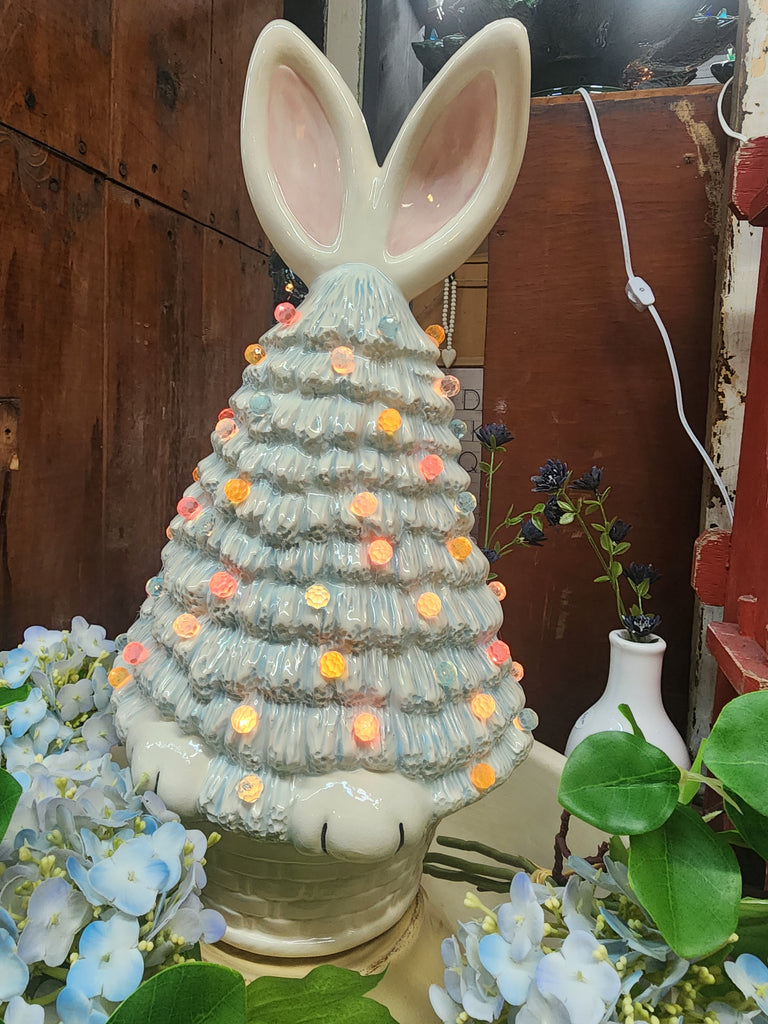 SKUBeautiful handcrafted Ceramic Easter Bunny Tree with basket weave base. Tree is glazed and fired to cone 4. It features a very cute set of bunny ears up top, tiny little bunny feet on the bottom, and a cute little bunny rabbit on the back. Price includes freight charge to lower 48. BE SURE TO MARK SHIP TO INSURE THE CORRECT PAPERWORK IS CREATED A small packaging fee will be added by the software. Each tree is handmade and unique. No two trees are identical. In stock tree ships within 3 business days. If out of stock, allow 4 - 6 weeks to make and ship. A tracking number will be emailed.