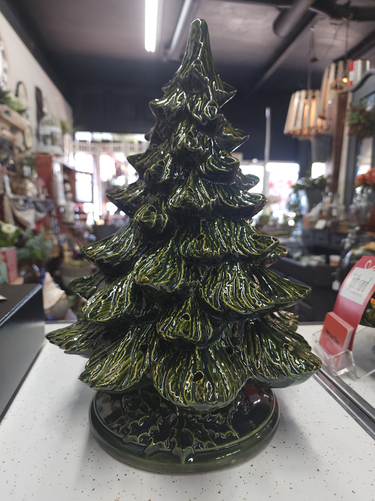 Beautiful heirloom quality ceramic tree made from a vintage Nowell Mold 1968-72 time frame. Glazed trees are available in several color options. Tree includes choice of clear or multicolor light twist and clear star, and light kit. Trees in stock ship in 2-3 days, if out of stock, please allow 4-6 weeks lead time to make and ship. Price includes freight to lower 48. Small handling and packaging fee will be added to insure package arrives safely.