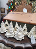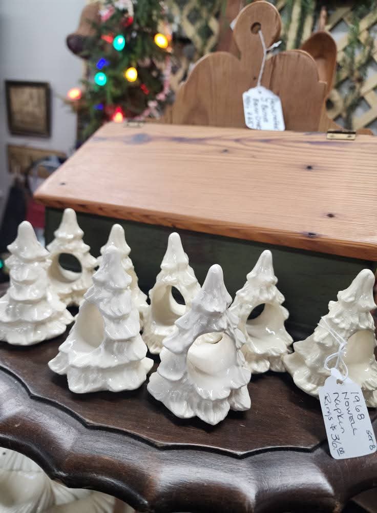 Set of 8. Beautiful heirloom quality ceramic tree napkin rings make from a vintage Nowell Mold 1968-72 time frame.  Glazed tree rings are available in 2 colors. Trees in stock ship in 3 business days, if out of stock,  please allow 4-6 weeks lead time to make and ship.  Price includes freight to lower 48. Small handling and packaging fee will be added to insure so be sure to mark order to ship so correct  documents are created.