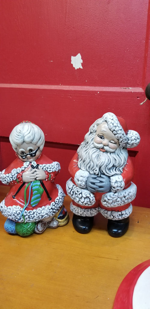 SKU Clause2setPair of ceramic Mr and Mrs Clause made from vintage molds And hand painted and antiqued in acrylics and washed...just like grandmas was back on the day! Each piece is handcrafted and no 2 pieces will be identical. In stock items ship within 3 business days. Leadtime 4 - 6 weeks to make and ship, if out of stock. Price includes freight to lower 48 states. The software will add a small packaging fee to cover the extensive packaging supplies required to insure safe arrival. Upon shipment you will be emailed a UPS tracking number. Be sure to mark SHIP OR Pickup so the software will create the correct documents. Thank you