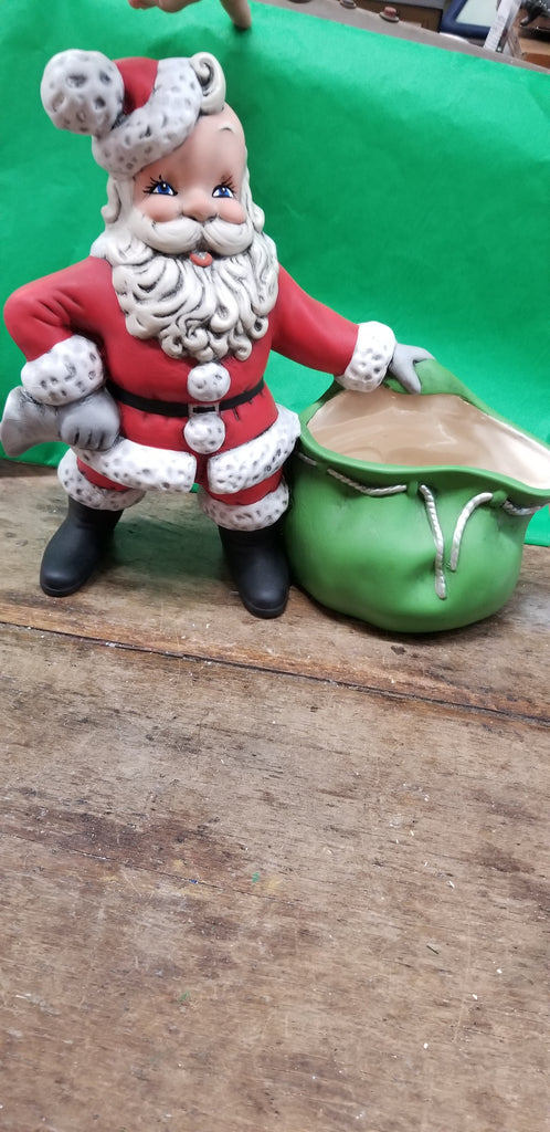 Santa Clause ringing a bell and toy bag. He is made from a very old vintage molds And hand painted and antiqued in acrylics. He is painted